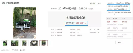 摩托艇以5.67萬元起拍,歷經37次競拍,最終以8.47萬元成交