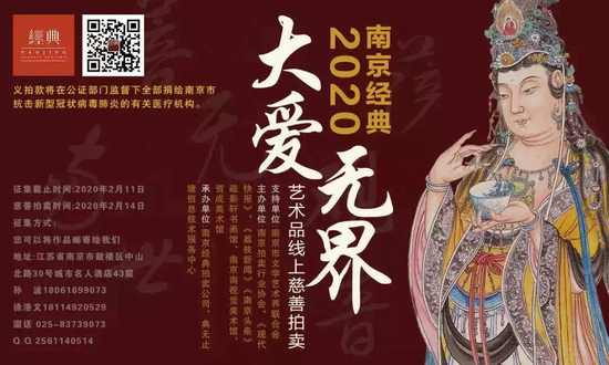 南京經(jīng)典拍賣:義拍善款給予南京市抗擊新型冠狀病毒疫情的有關(guān)醫(yī)療機(jī)構(gòu)在江蘇省拍賣行業(yè)協(xié)會(huì)的倡議和組織下,江蘇各拍賣企業(yè)紛紛采取各種方式伸出援助之手。南京經(jīng)典拍賣籌劃的“大愛無界”藝術(shù)品線上慈善拍賣會(huì)將于2月14日晚8點(diǎn),在“經(jīng)典拍”小程序上準(zhǔn)時(shí)舉行,2月16晚8點(diǎn)結(jié)束拍賣,征集活動(dòng)到2020年2月11日截止。拍賣結(jié)束后所得義拍款將在公證部門監(jiān)督下全部捐給南京市抗擊新型冠狀病毒感染的肺炎疫情的有關(guān)醫(yī)療機(jī)構(gòu)。目前已有包括李繼開在內(nèi)的多位藝術(shù)家捐贈(zèng)作品給南京經(jīng)典拍賣公司。