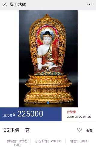 上海拍賣行:45件拍品籌集善款296萬(wàn)元2月7日晚,上海首場(chǎng)抗疫專場(chǎng)在線慈善義拍——“玉佛呈祥”上海玉佛禪寺抗擊疫情專場(chǎng)義拍在上海拍賣行有限責(zé)任公司微信拍賣平臺(tái)“海上藝槌”以募集善款296.635萬(wàn)元的成績(jī)落幕?;顒?dòng)吸引海內(nèi)外萬(wàn)余人次的瀏覽圍觀,來(lái)自中國(guó)、日本、美國(guó)、泰國(guó)等地?cái)?shù)百位買家1499次的激烈競(jìng)價(jià),以致系統(tǒng)延時(shí)15分鐘關(guān)閉。所有善款將專向用于上海市慈善基金會(huì)采購(gòu)20000件醫(yī)用防護(hù)服、10000個(gè)醫(yī)用護(hù)目鏡、20000個(gè)N95口罩捐贈(zèng)至醫(yī)療機(jī)構(gòu)。