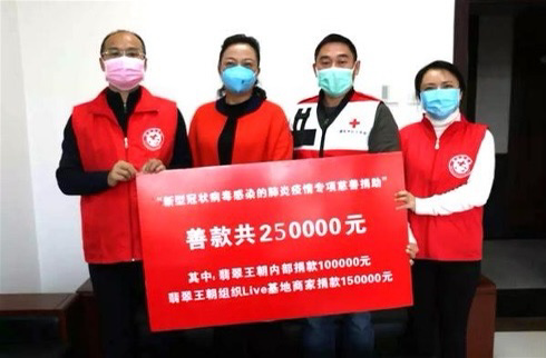在全國(guó)抗擊疫情的關(guān)鍵時(shí)刻,翡翠王朝網(wǎng)絡(luò)科技有限公司也迅速行動(dòng)起來,發(fā)動(dòng)全員募捐。公司伙伴和Live入駐商戶積極響應(yīng)號(hào)召,奉獻(xiàn)愛心。截至目前,已籌集善款共計(jì)260725元,并全部捐贈(zèng)完成,將由瑞麗市紅十字會(huì)專項(xiàng)劃撥到新型冠狀病毒感染肺炎疫情防控工作中使用。