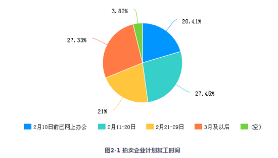 值得關(guān)注的是,盡管拍賣企業(yè)復(fù)工意愿強(qiáng)烈,但有效復(fù)工不足,復(fù)工后實(shí)現(xiàn)有效運(yùn)轉(zhuǎn)還需時(shí)日。開放性問題的回答也顯示,目前企業(yè)復(fù)工多為網(wǎng)上辦公或值班辦公,并未完全進(jìn)入正常經(jīng)營(yíng)狀態(tài)。調(diào)研對(duì)象普遍估計(jì),疫情基本結(jié)束后1-3個(gè)月企業(yè)經(jīng)營(yíng)才能基本恢復(fù)。