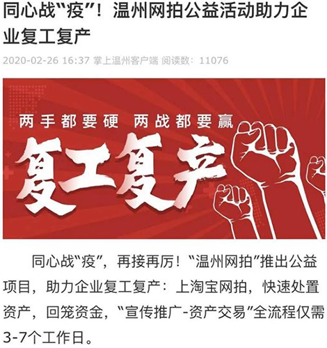 溫州嘉誠拍賣為發(fā)揮好責任擔當和能力擔當,助力抗疫后期的經濟恢復,在繼續(xù)加強與各地拍賣企業(yè)共同對農村市場的研究與探索外,還聯(lián)合溫州網拍(溫州市網拍信息技術有限公司)推出公益活動,對企業(yè)的庫存資產處置(成品、半成品)推出網拍零傭金活動。此外,溫州嘉誠在疫情期間還加緊開發(fā)APP小程序應用——“拍小虎”,配套更多資產處置進行流程管理、拍品預約看樣、大宗資產管理等。