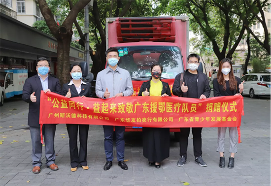 4月10日,廣東華友拍賣行有限公司發(fā)起的“公益同行·益起來致敬援鄂醫(yī)療隊員”活動,捐贈水產(chǎn)品發(fā)車儀式在廣州舉行。